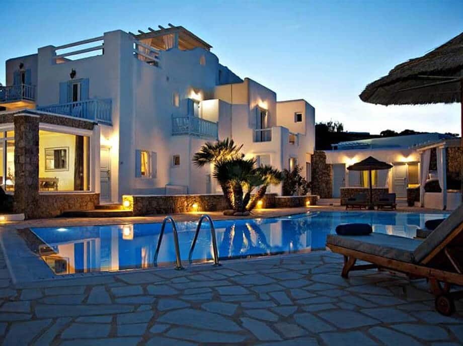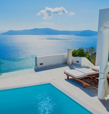Beautiful hotels on the rocky shores of Greece.